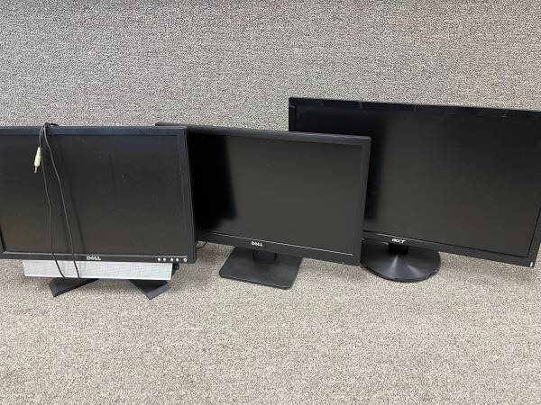 I have various sized computer monitors - all in working condition. $10 per or make an offer. DVI or VGA cable and power cord included. Contact me for additional info / model numbers.