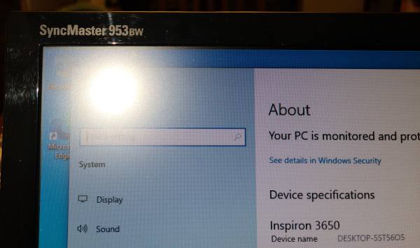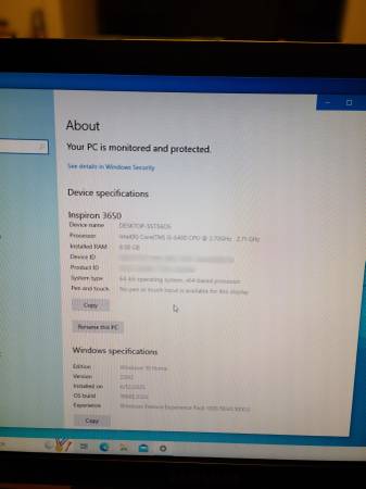 Just factory reset. Clean, like new Dell Inspiron 3650. Comes with very nice Samsung SyncMaster 953BW monitor, keyboard, mouse, and cables. 6th Gen Intel Core i5-6400 2.70 GHZ processor, Intel H110...