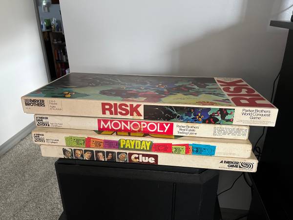 Four vintage board games available -pre- owned. All have original instructions in box. All 4 for $30.