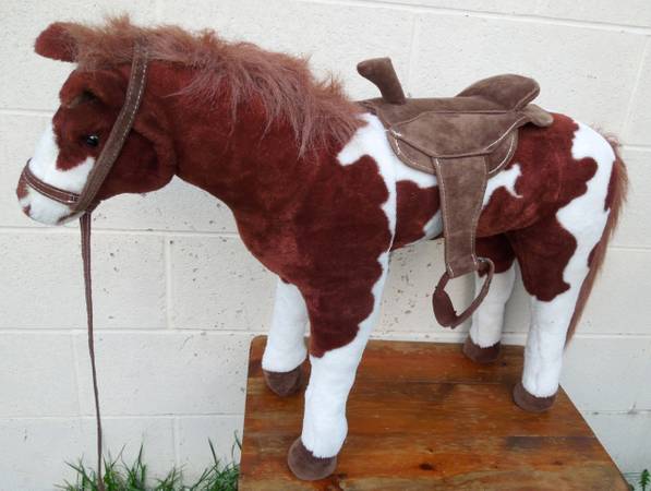 HEARTSONG 24" PLUSH BROWN / WHITE PINTO RIDE ON HORSE w/ LIFE LIKE MANE - $25.00 31" x 9" x 24"(H) AGES 3 + UP WEIGHT CAPACITY - 150 POUNDS EXCELLENT CONDITION Please feel free to contact seller for...