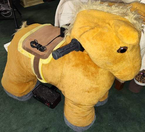 LARGE PLUSH HORSE OUR GRANDBABY HAS OUTGROWN. INCLUDES 6V BATTERY AND CHARGER.