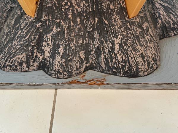 Has both original removable roof panels, chandelier, glow in the dark lighting bug jar, basket on rope. Only damage is minor to bottom panel of stand (pictured) and one wooden railing slat missing.