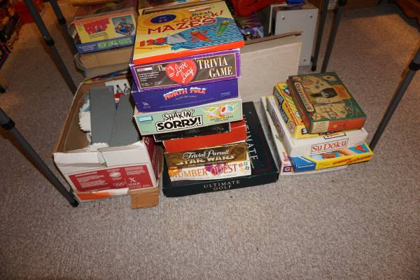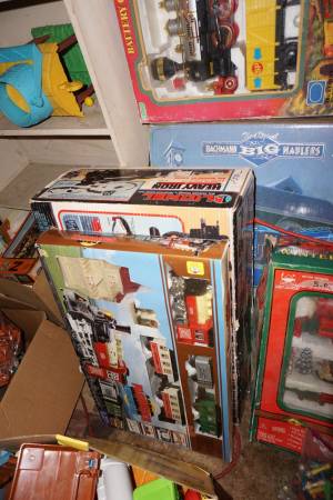 100’S OF Vintage, Newer & collectable board games, toys, remote control toys, Lincoln Logs, Tin Litho, Legos, Dungeons & Dragons, Military, German, vintage & more, Barrister Bookcase, Duncan Phyfe Dining room set, TV’s, electronics, clocks, mirrors, upholstered furniture, occasional tables & chairs, bedroom furniture, Danbury Mint & other collectable miniature buildings, Model Ships of all sizes & kinds including ships in a bottle, Cannon collection, curio cabinet, loads of kitchenware including vintage glassware & character glasses, holiday décor including vintage, 100’s of Trains, train sets, track, transformers, accessories, buildings (plasticville & ceramic), all sizes: Standard, O gauge, HO & N scale, including Lionel, Marx, Bachmann, Tyco, Thomas, Fisher Price and so many more, nerf guns, coin banks, Panopoly’s, helmets, swords & more, Aquariums & accessories, 100’s of books, Oculus & other virtual reality, House is PACKED!!