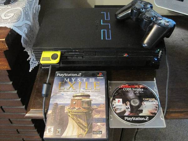 Play Station 2 in good working condition. Includes a memory card, controller, audio A.V. connectors and two games. We set it up and all worked great