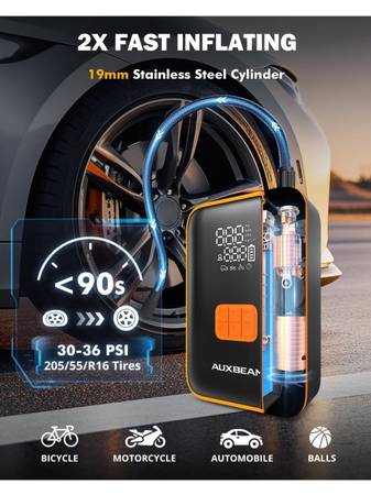 🚗 Smart Tire Inflator – Set It & Forget It: Need air? The 150PSI air compressor auto-stops at your preset pressure (PSI/kPa/Bar), pumping tires 25% faster than most. Fill a flat truck tire to 36PSI in 90 seconds, then chill—its cooldown reminder keeps things safe. Perfect for road trips, bikes, or game-day soccer balls.