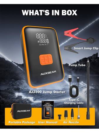 Auxbeam Jump Starter with Air Compressor, 3500A Jumper Box for Car Battery Portable (8 Gas/4.0L Diesel) with 150PSI Cordless Auto-Shutoff Tire Inflator, 12V Battery Jump Pack for Compact Vehicle