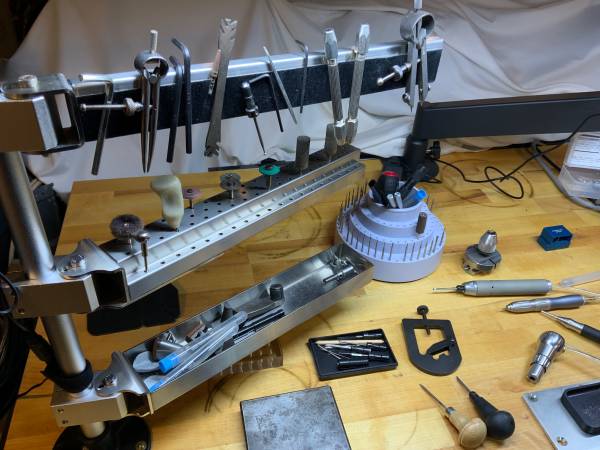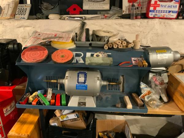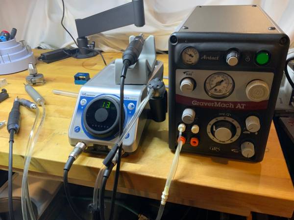 COMPLETE SET OF JEWELERS ENGRAVING AND DIAMOND SETTING EQUIPMENT. ALSO MANUFACTURING EQUIPMENT TO INCLUDE POLISHING SET, SPLIT LAP, CASTING, HAND TOOLS,BURS, AND OVER 2000 RUBBER MOLDS. IT IS BEST TO CALL FOR MORE INFO.MOST IS NEW AND SOME IS USED