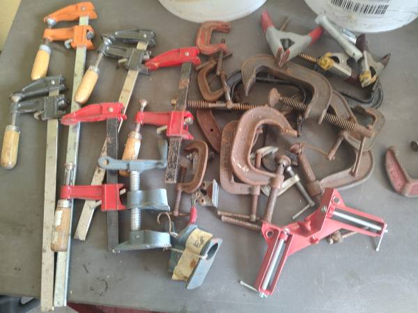 58 screwdrivers $25 27 various pliers, wire stripper, oil filter pliers $20 14 C clamps, 5 wood clamps ( might have more) 1 pipe clamp, corner clamp, 4 spring clamps and a hold down clamp $20. 3...