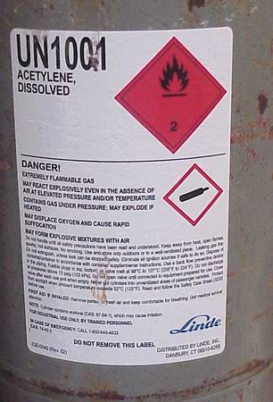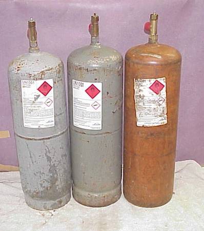 "B" size acetylene cylinder, 40 cubic feet. Fresh fill and good inspection date. Linde brand. Firm at $70 EACH CASH.