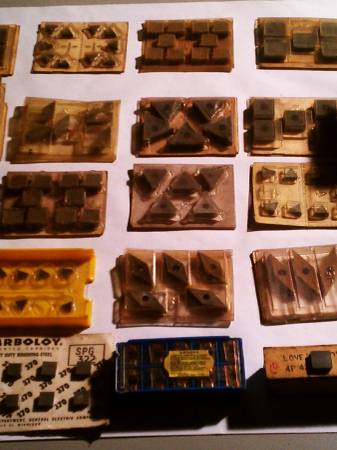 Brand new carbide inserts for sale. A large variety of different sizes and shapes. $20.00 per pack of 10 pcs! $10.00 per pack of 5 pcs! Must buy by the pack, any size or shape! Call show contact info