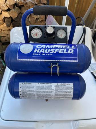 Selling my old Campbell Hausfeld Compressor. It works good. It was just too small and not powerful enough for my current needs. It will work good for inflation, stapling, brad nailing, blowing compressed air. But it takes too long to recover for bigger jobs like working on cars, or impact wrenching something more serious. Comes with a 25 foot pvc air hose. You can test it before buying. $50 Call or text 4seven1zero1eight1.