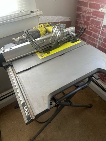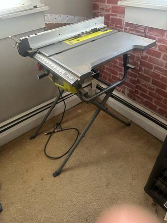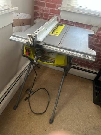 For sale is my my Ryobi 10 inch Table Saw comes with stand and guard and everything else it came with . Works very well cuts easily in used condition but works like new retails for over 350$