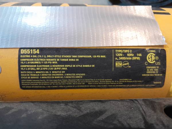 PORTABLE AIR COMPRESSOR, 4 GALLON 1.1HP, 4 CFM@90 PSI 120 V D55154