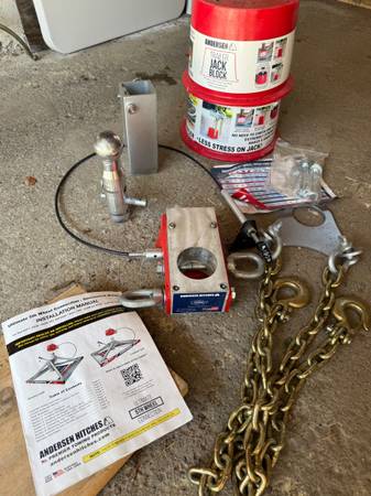 Complete Anderson Hitch system with chains and two (2) trailer Jack Blocks for easy use. Rarely Used. We no longer own a 5th wheel. This is a full package with a retail value of $1600. Local pickup...