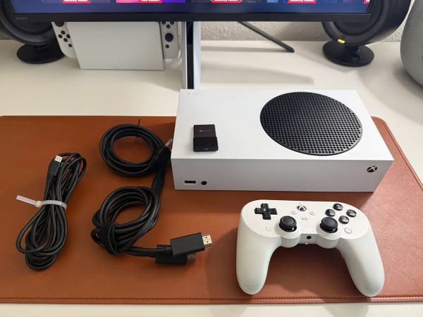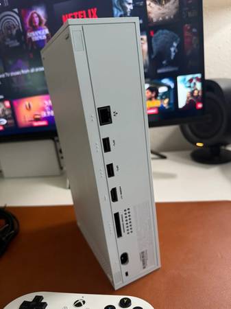Adult owned. Console storage is 512gb but comes with 2tb Seagate storage expansion. All og chords with 8bitdo wired controller only. Works great with no cosmetic flaw, owned for less than a year. Last picture shows there is no issue with set up and is reset and ready to go.