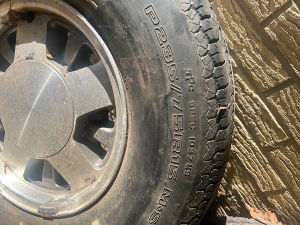 4 15"alum wheels off of a 1997 silverado 2 wheel drive. 5 lug pattern. tires are shot. you are buying for the alloy wheels not the tires. asking $50/offer. calls only to dave on landline 716...