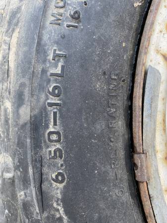 6.50-16LT tire with Lots of tread and also has cracks in tires.