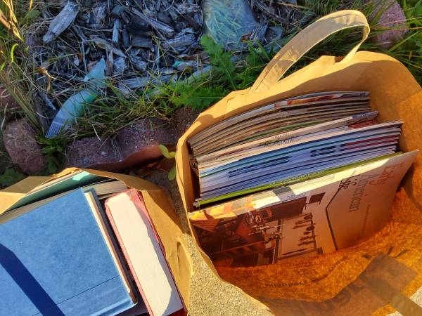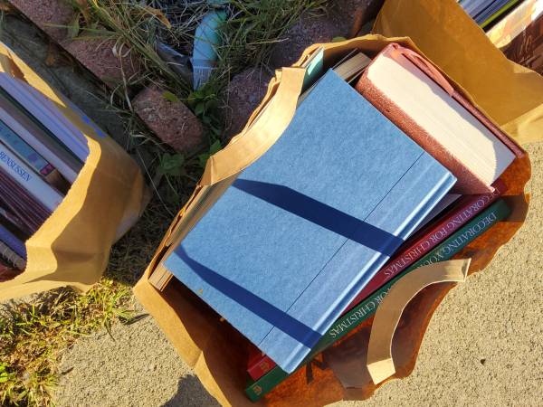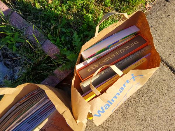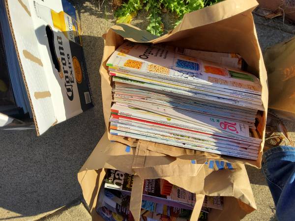 AT THE CURB: MARTHA STEWART LIVING, HANDY MAN, SOUTHERN LIVING, BETTER HOMES AND GARDENS, GOOD HOUSEKEEPING, COUNTRY LIVING AND MANY MORE. ALSO MANY BOOKS. PLEASE DON'T PICK THROUGH THE BOXES AND BAGS. PLEASE TAKE THEM AS THEY ARE AND GO THROUGH THEM AT HOME.