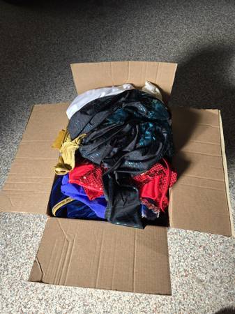 I have a few items to give away. They are all in good condition. I am located in Lockport near the High School. See photos Box of girl dance costumes Large stuffed animal Standing Lamp (needs light...